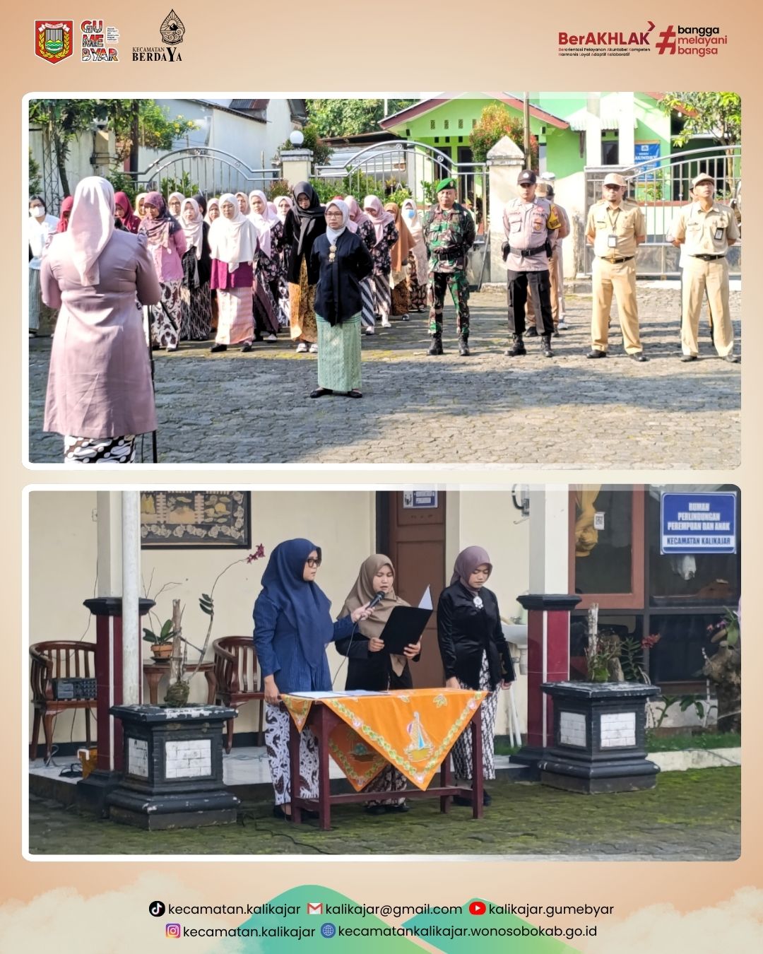 Peringatan ini juga menjadi ajang penguatan sinergi antar-perempuan di lingkungan Kecamatan Kalikajar. Semangat BerAKHLAK dan rasa Bangga Melayani Bangsa terpancar jelas dalam kebersamaan yang terjalin selama acara berlangsung.