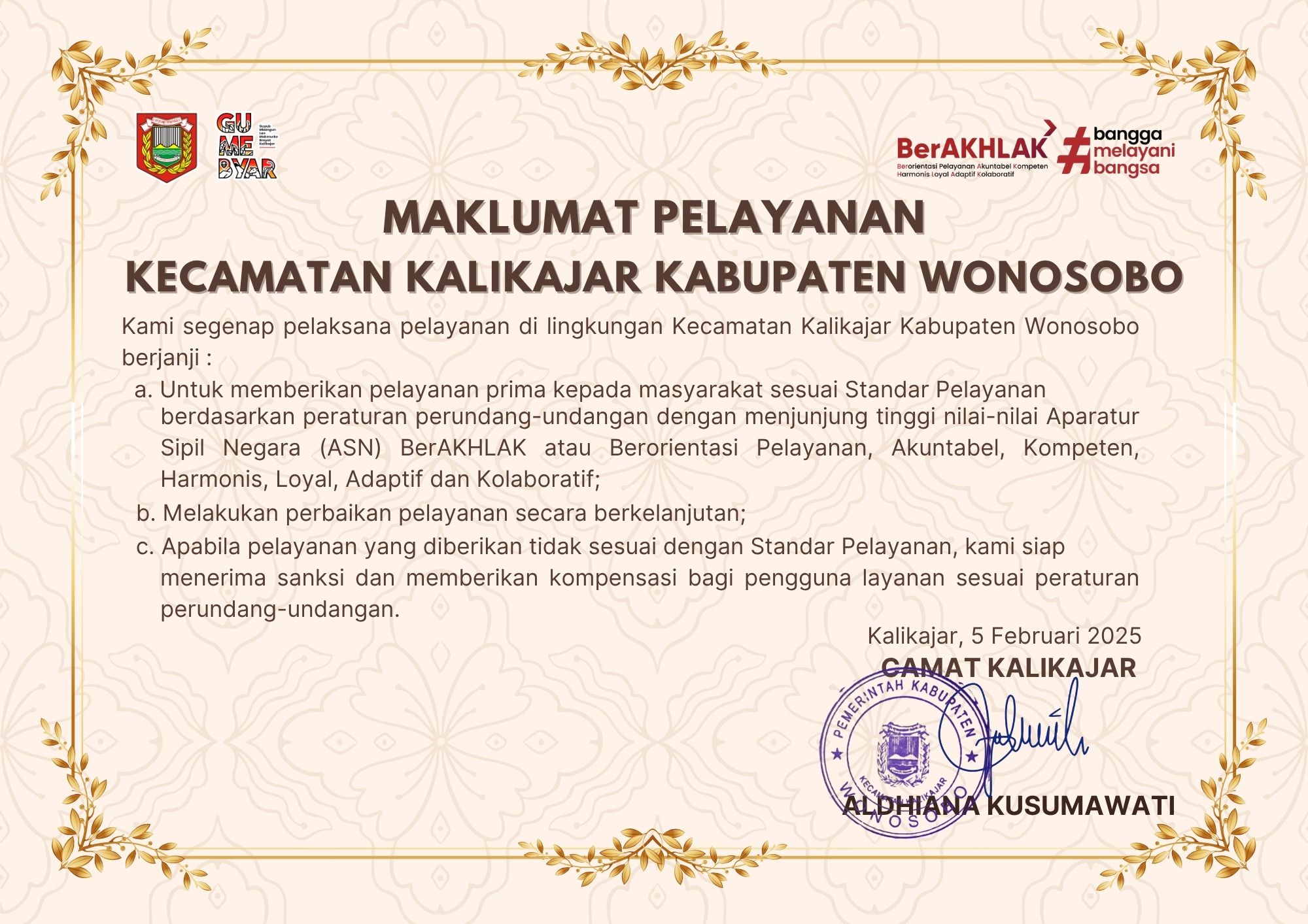 MAKLUMAT PELAYANAN KECAMATAN KALIKAJAR